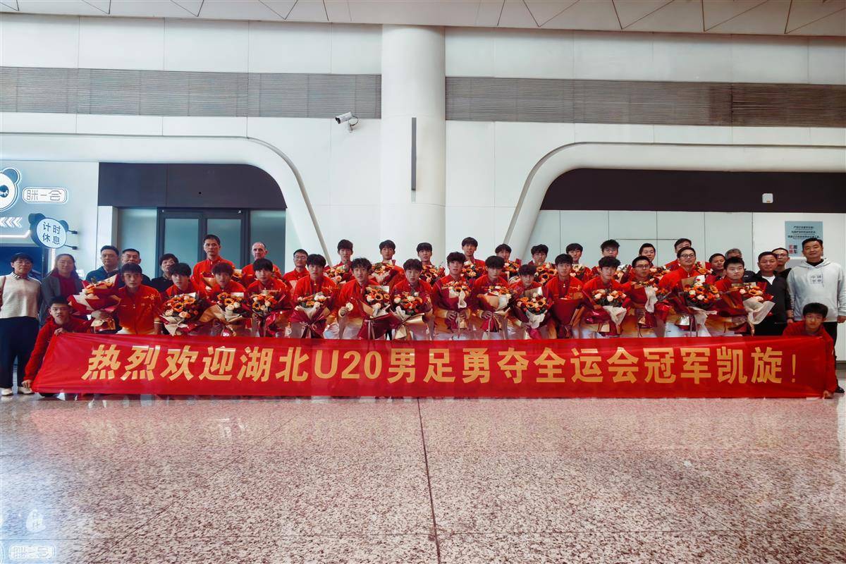 湖北U20足球队抵达武汉天河机场。湖北日报全媒体记者何旭“欢迎来到冠军之家!” 11月13日中午,武汉天河机场接机通道上充满了欢声笑语。夺得第十五届全运会男子U20冠军的湖北队,带着沉甸甸的金牌和荆楚人的骄傲归来! 12日晚的决赛中,凭借孙康博第90分钟的压哨绝杀,落后1球的湖北队与广东队交锋,在最后的点球大战中击败东道主队,成为全运会足球史上第一支站上最高领奖台的湖北队。从小组赛到决赛,小伙子们用自己良好的意志和高超的球技一步步创造了荆楚足球的高光时刻。 “我们是黑马!”孙康博的信念与毅力 孙康博走出机场接机通道,接过鲜花受到队员们的欢迎,并谦虚地与粉丝朋友一一合影。他看着镜头,脸上带着微笑,做出了咬金牌的动作。记者询问孙康博,比分落下后是否想过放弃。他目光锐利,坚定地说:“从第一分钟到最后一分钟,我们从来没有想过放弃,全队都相信我们能够扭转局面,是对胜利的渴望支撑着我们战斗到最后!”决赛中的精彩反击,不仅吸引了湖北球迷,也引发了网络上的热议。孙康波表示,冠军归功于每一位相信奇迹的湖北足球运动员。他公开承认,湖北队此时并不被外界看好,但全队上下都以“拼”字为首要任务。 “对手不看好我们,但我们是最有希望的!我们是为冠军打造的黑马!”球迷们自发来到现场,用掌声和欢呼声迎接英雄归来。老球迷感动:青训沃土,前途光明。李汉成身穿武汉三镇球迷外套赶赴天河机场。他今年75岁,来自武汉新华路球迷协会。谈起这场载入中枢足球史册的决赛,他拍着拳头,泪流满面。 “在常规时间的最后10分钟,我和我的老朋友们都从沙发上站了起来。那一刻,大家欢呼雀跃、拥抱在一起!”停下来后,李汉成告诉记者:“这场决赛赢了不容易!但湖北队用激烈的战斗和良好的战术执行力,把冠军带回家了!”更让这位跟随湖北足球数十年的老人感到满意的是,夺冠的背后是湖北队的蓬勃发展。我省青少年足球训练。詹说,“每个周末去塔子湖基地,总能看到很多七八岁的孩子在训练,看到他们就像看到了湖北g足球的活力和未来。”历经战火,U14少年誓言卫冕。当大巴到达姑嫂树训练基地2号门时,顿时锣鼓喧天,舞狮欢腾。 99发烟花大炮一一放响。天空中的烟花洒在胜利的英雄身上,落在运动员的肩上,金牌和队服上的“湖北”字样。道路两旁的工作人员和运动员们疯狂欢呼。湖北足球队队员彭伟辰激动地说:“我们的前辈们夺冠的动力非常足!我相信,通过更加刻苦的训练,四年后我一定能够站在第十六届全运会的舞台上。”赛场上,为湖北卫冕金牌! “来回在青训基地体育场,从全运会冠军领奖台上,湖北足球开启了良好而坚实的争冠之路。闪亮的金牌是几代湖北人民辛勤劳动的成果;