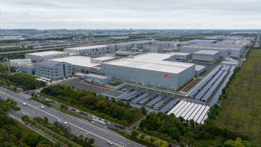 位于中韩(盐城)产业园的SK新能源一期动力电池生产基地(10月16日拍摄,无人机拍摄)。新华社记者 李波 摄